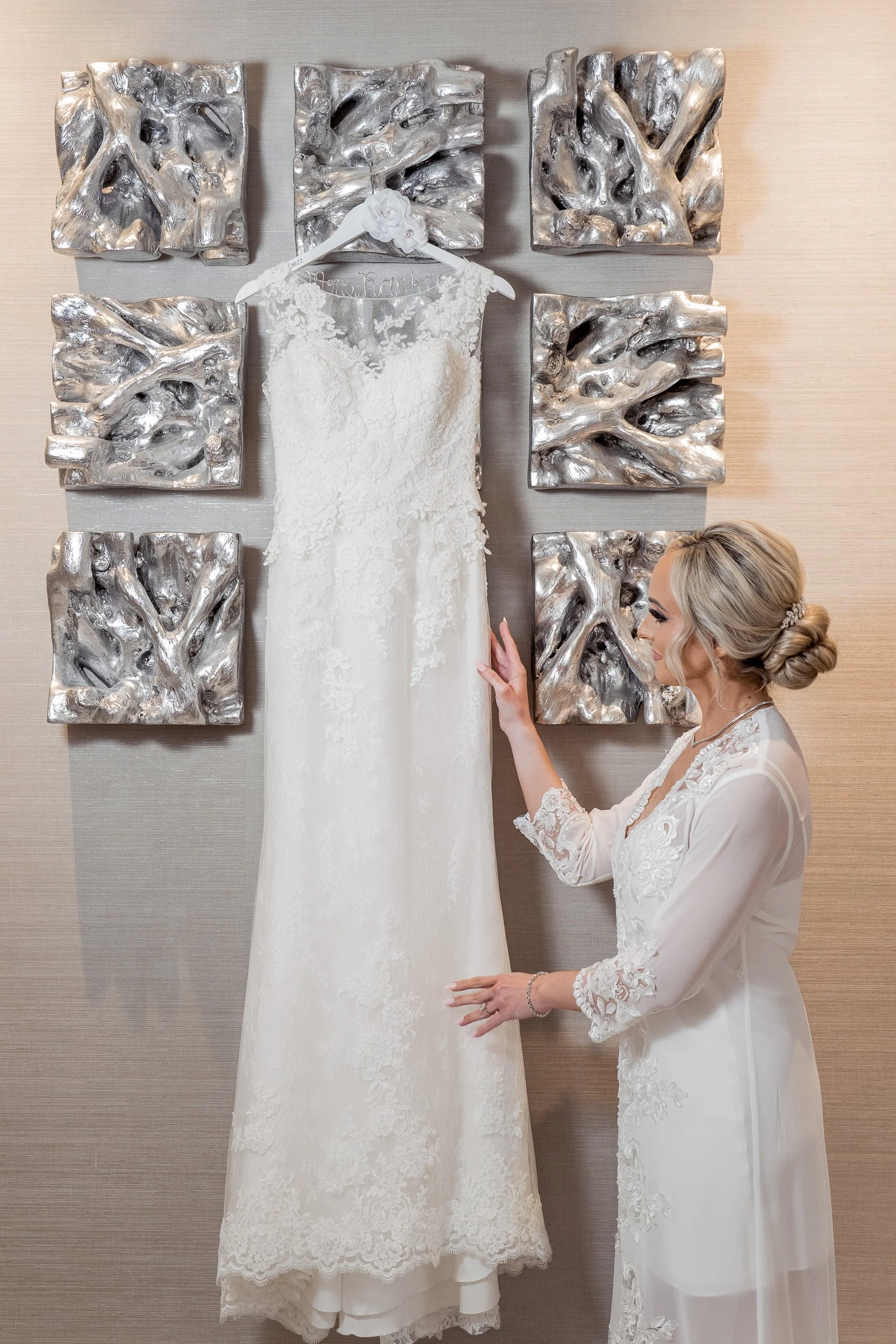 The hotel boasts a striking and contemporary architectural design, which provides a beautiful backdrop for your wedding photos. That was the case for this couple; we made good use of the staircase, windows, and chandelier area to capture those timeless portraits.